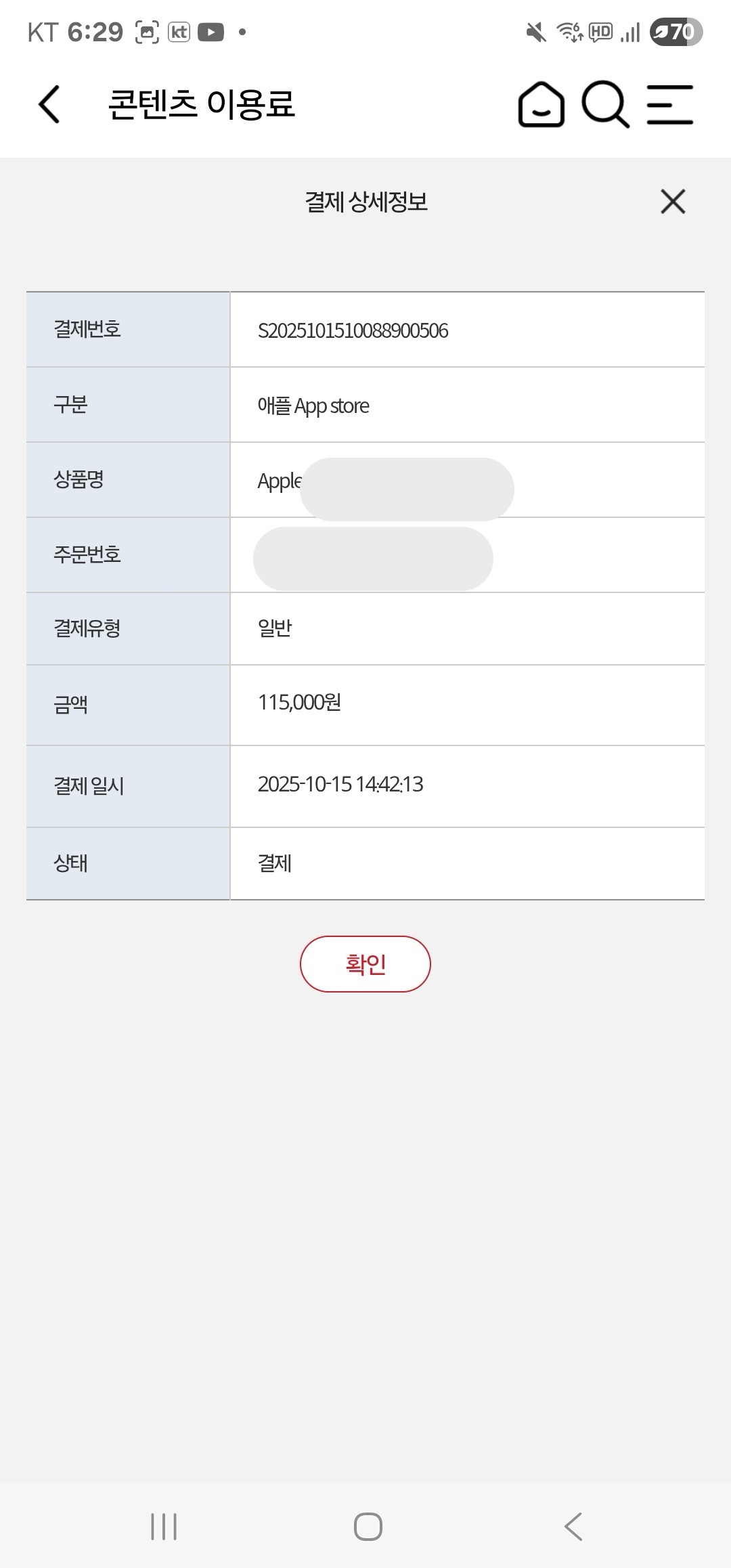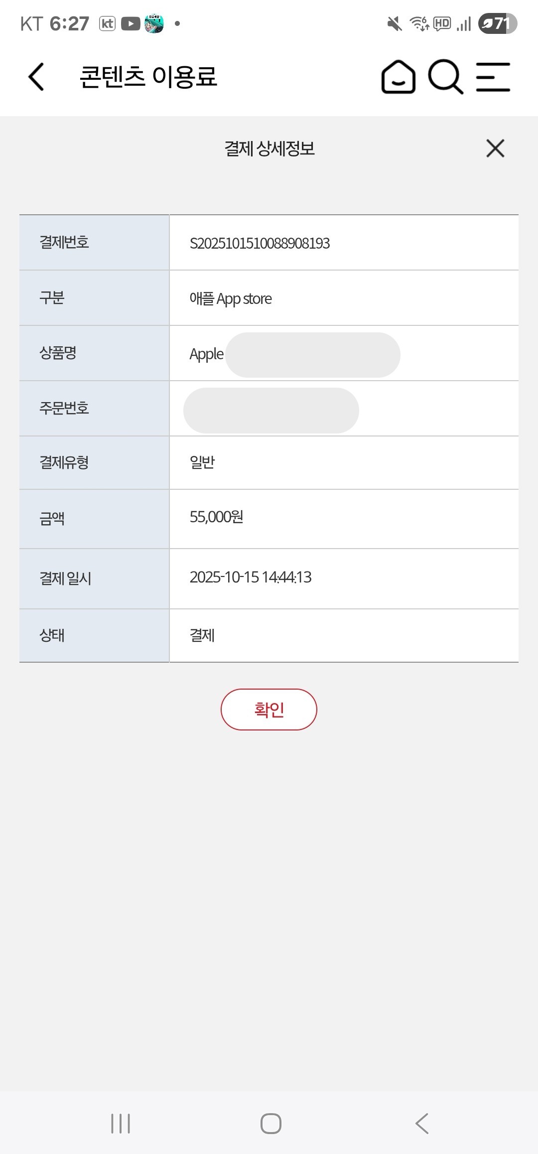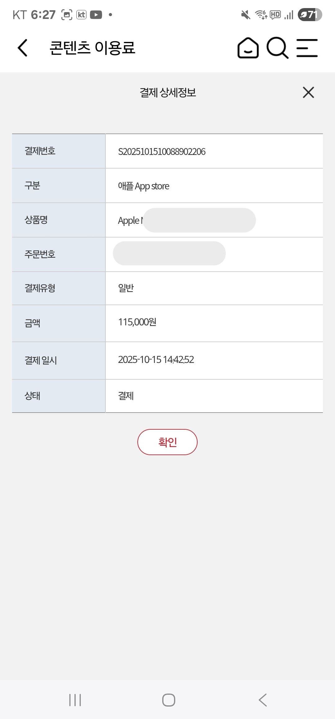 환불은 사용하신던 Apple 계정으로 https://reportaproblem.apple.com 으로 해보시고, 아니시라면 최근 KT 휴대폰 소액결제 피해와 관련된것 같습니다. 이럴경우 KT측에 문의해보셔야 합니다.