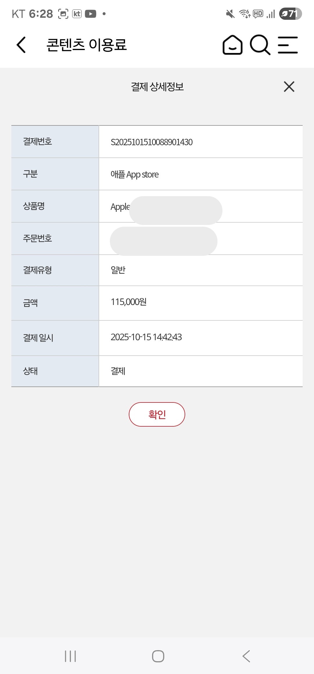 참고로 갤럭시쓰고 있고 보니까KT에서 요금조회 해보니 콘텐츠이용료... 누군가가 무단청구했네요.꼭 취소나 철회해주세요 ㅠㅠ