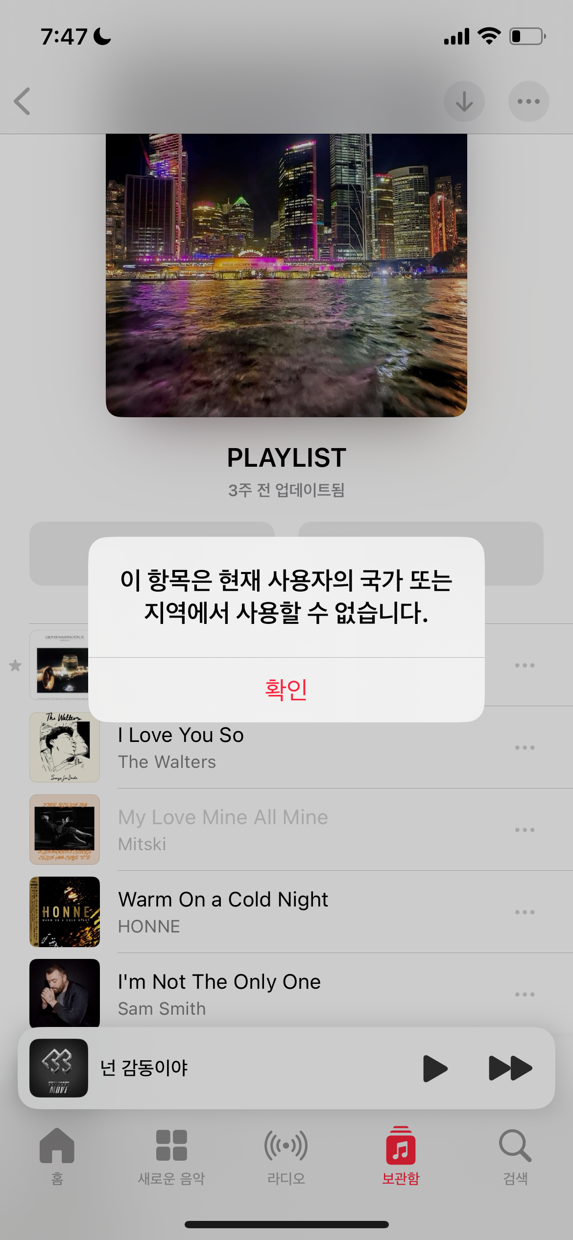 [관리자에 의해 제목이 수정되었습니다.] 기존 제목: 애플뮤직 국가또는 지역에서 사용불가능