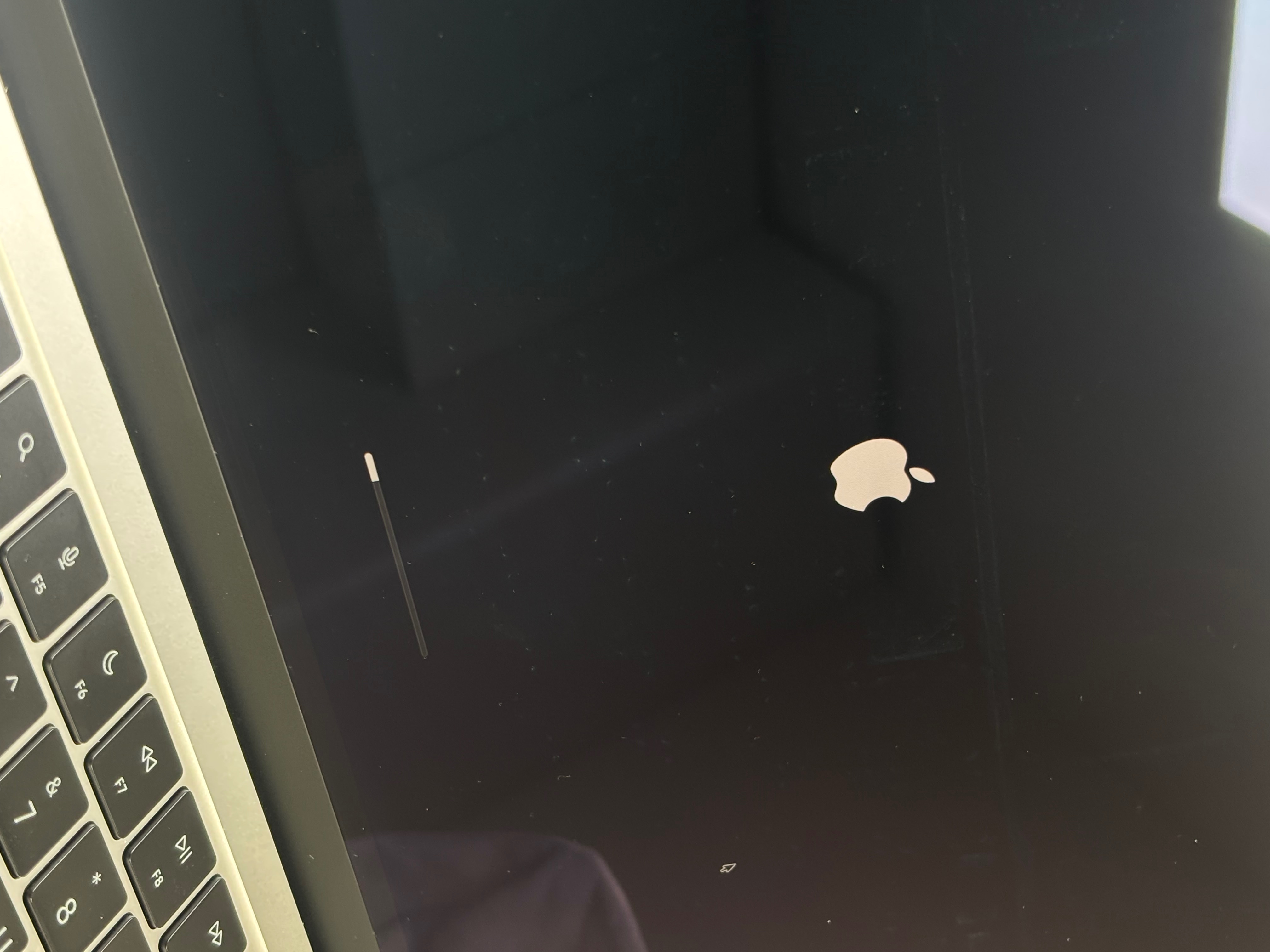 MacBook 시동중 애플 로고와 함께 표시된 진행 막대에서 멈춤