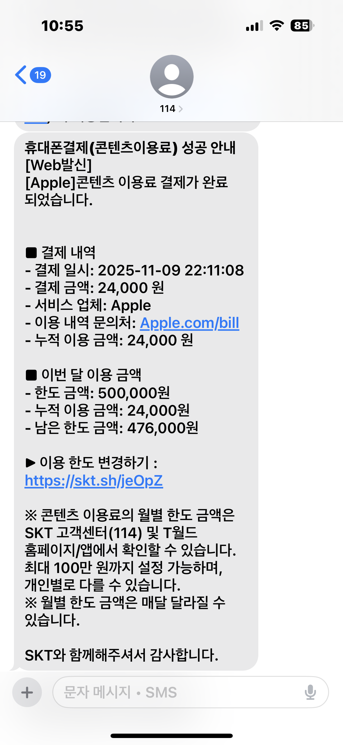 Apple에서 청구된 알 수 없는 콘텐츠 결제 건에 대한 환불 문의