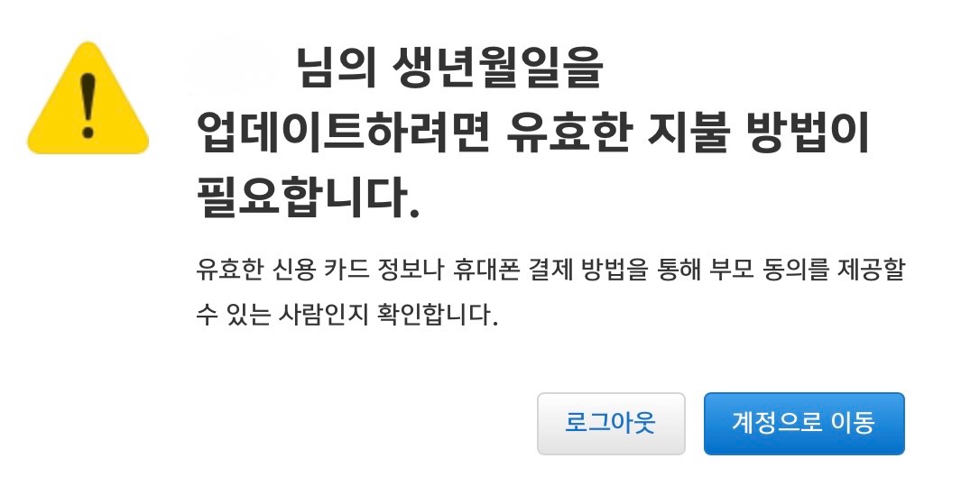 지불 방법 등록 오류로 인해 자녀 Apple 계정의 생년월일을 업데이트할 수 없음