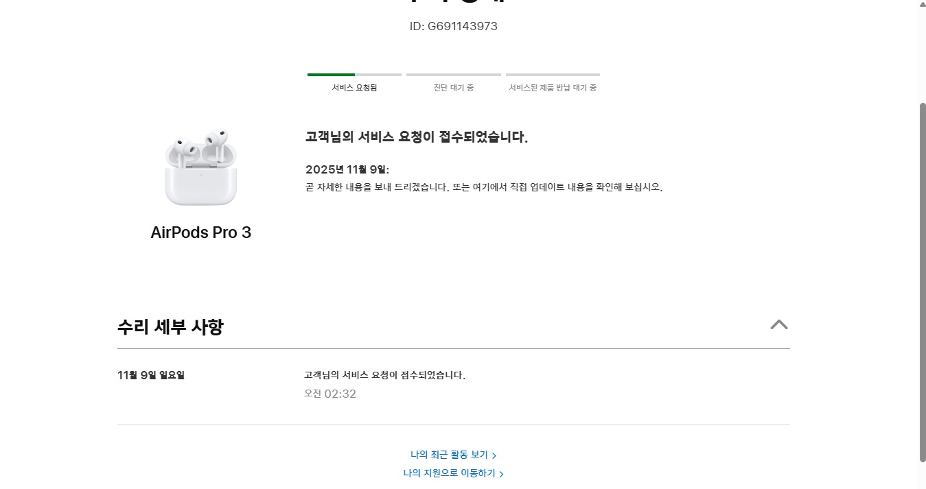 나는 분명 8일에 구매를 하고 배송받은건 11일인데 어떻게 9일 새벽에 서비스 신청이 되어 있는지... .