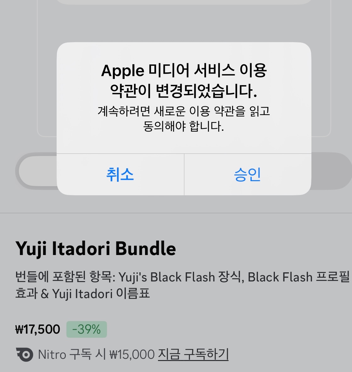 제가 아이템을 사려하는데 Apple 미디어 서비스 이용 약관이 변경되었다고 해서 허용버튼을 눌렀는데 창이 안 지워 지고 무한 반복이네요