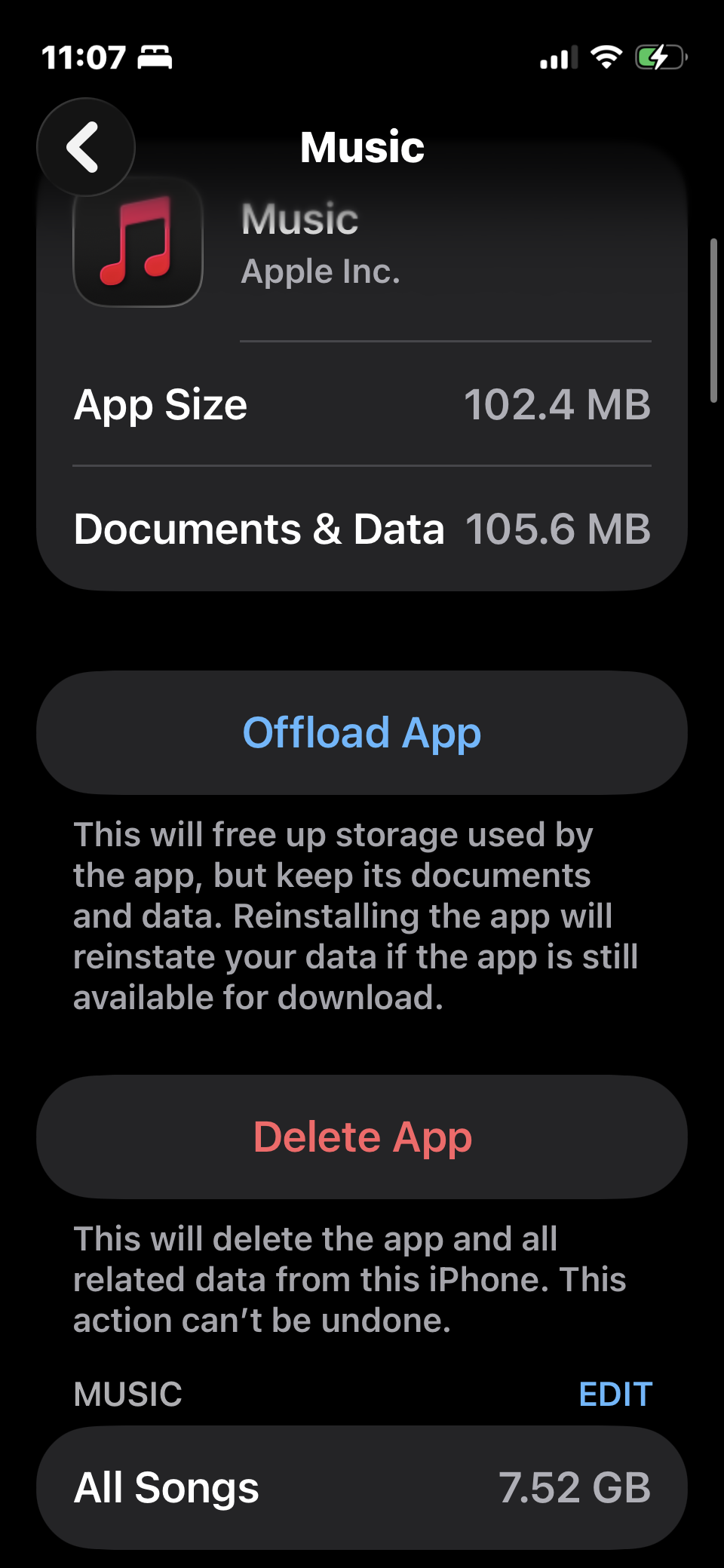 스크린샷 Music 옆 Edit 눌러 삭제가 안되나요? Delete App 버튼을 눌러 보시기 바랍니다. 그래도 안될 경우 iPhone 강제 재시동을 해보시고, 설정 > 스크린타임 > 콘텐츠 및 개인정보 보호 제한 토글이 꺼져있는지 확인해보시기 바랍니다.