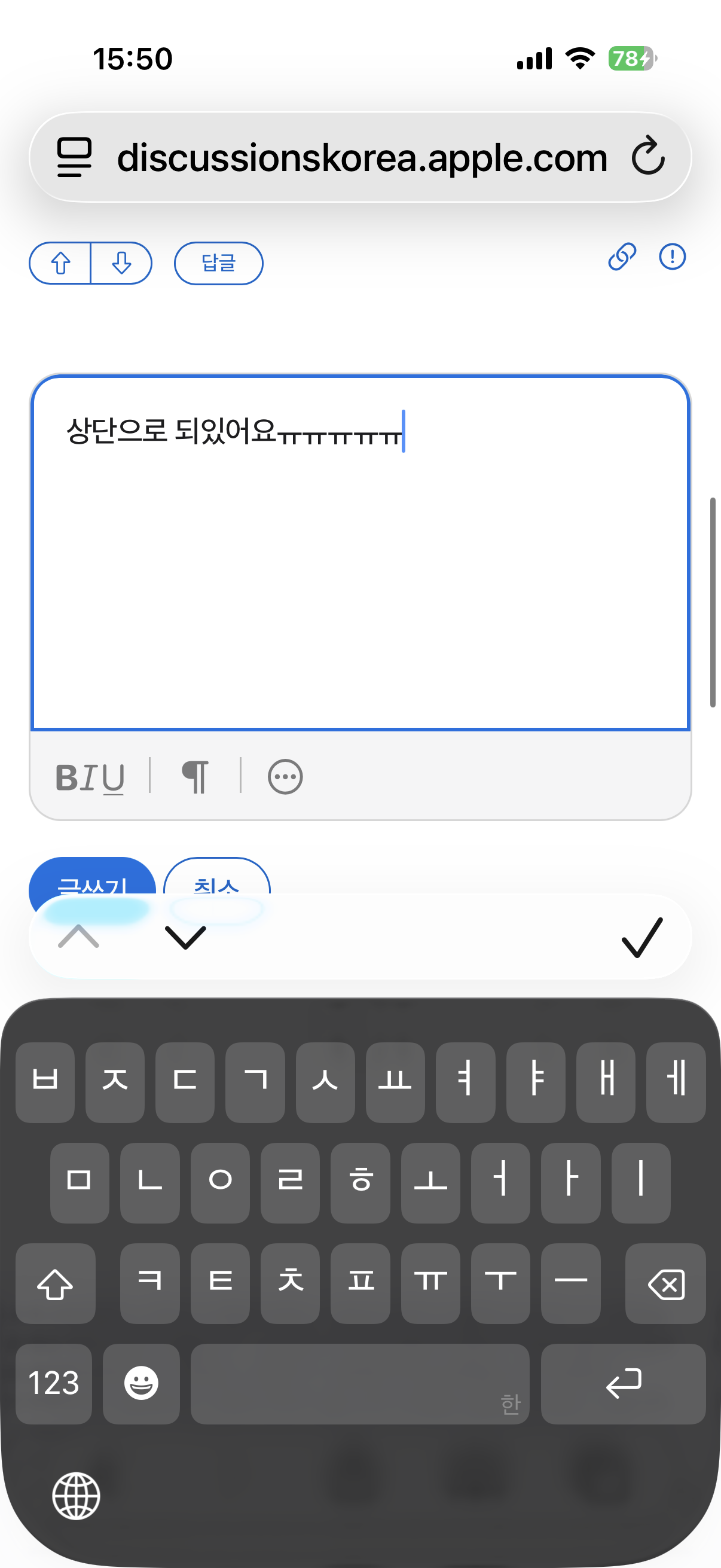 사파리 키보드 위에 뜨는 보조입력줄 삭제