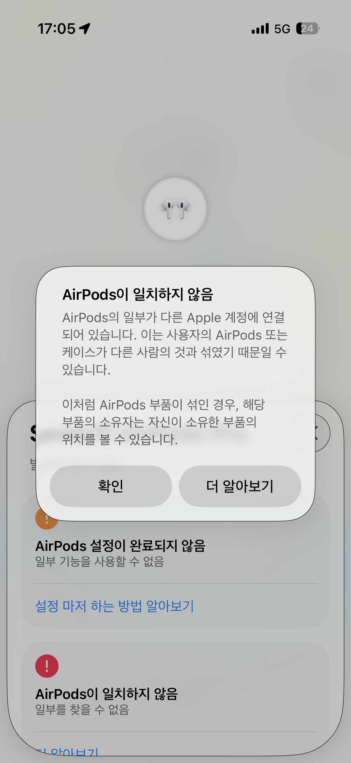 본체는 잃어버리고 유닛 한쪽만 남아 지인에게 줬는데 제쪽의 Find My에서 기기 제거도 하고 블루투스에서도 제거를 한 상태인데 지인이 사용하려고 하면 아직 저한테 페어링이 되어있는 상태라고 안내나온다고 합니다.