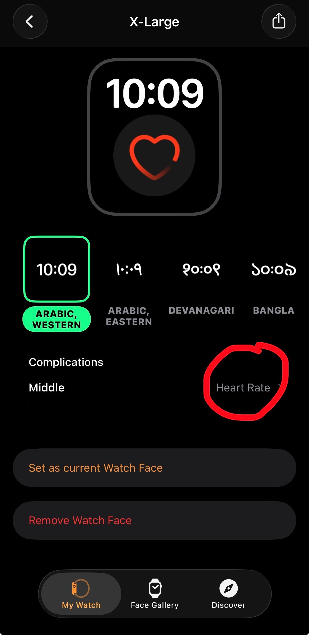 적용되었다면 Watch 앱 이 아닌 Watch 자체에서 컴플리케이션을 다른걸로 바꾼 후 심박수로 바꿔보시기 바랍니다.