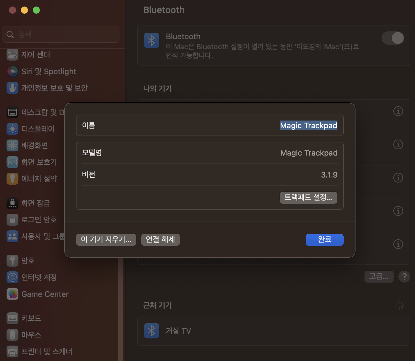 좌측 하단에 보면 트랙패드 옵션이 아예 없습니다