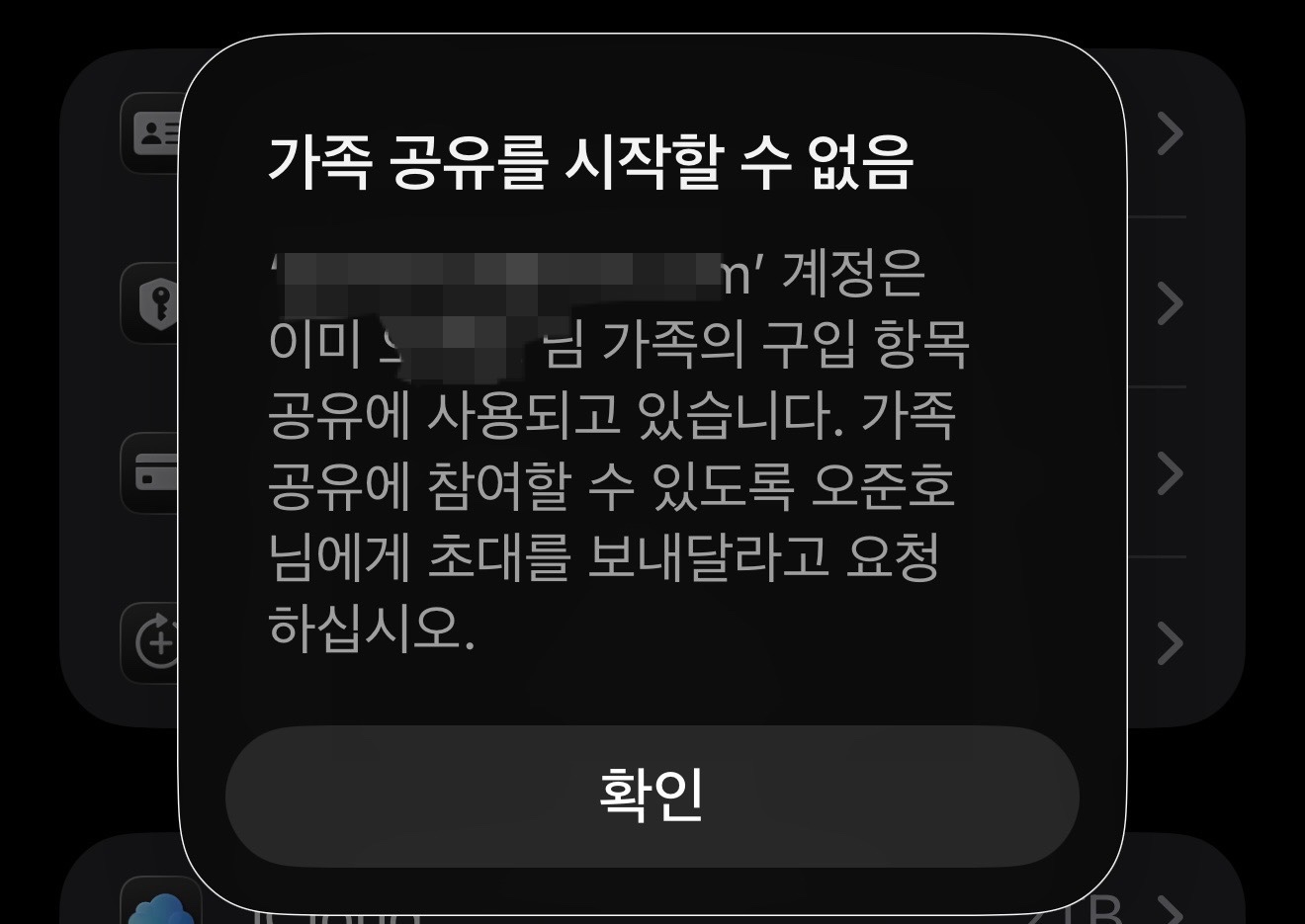 가족공유를 한적이없는데 계속 이렇게 나오고 해제도 못하고있어요... 해제하는방법좀 알려주세요