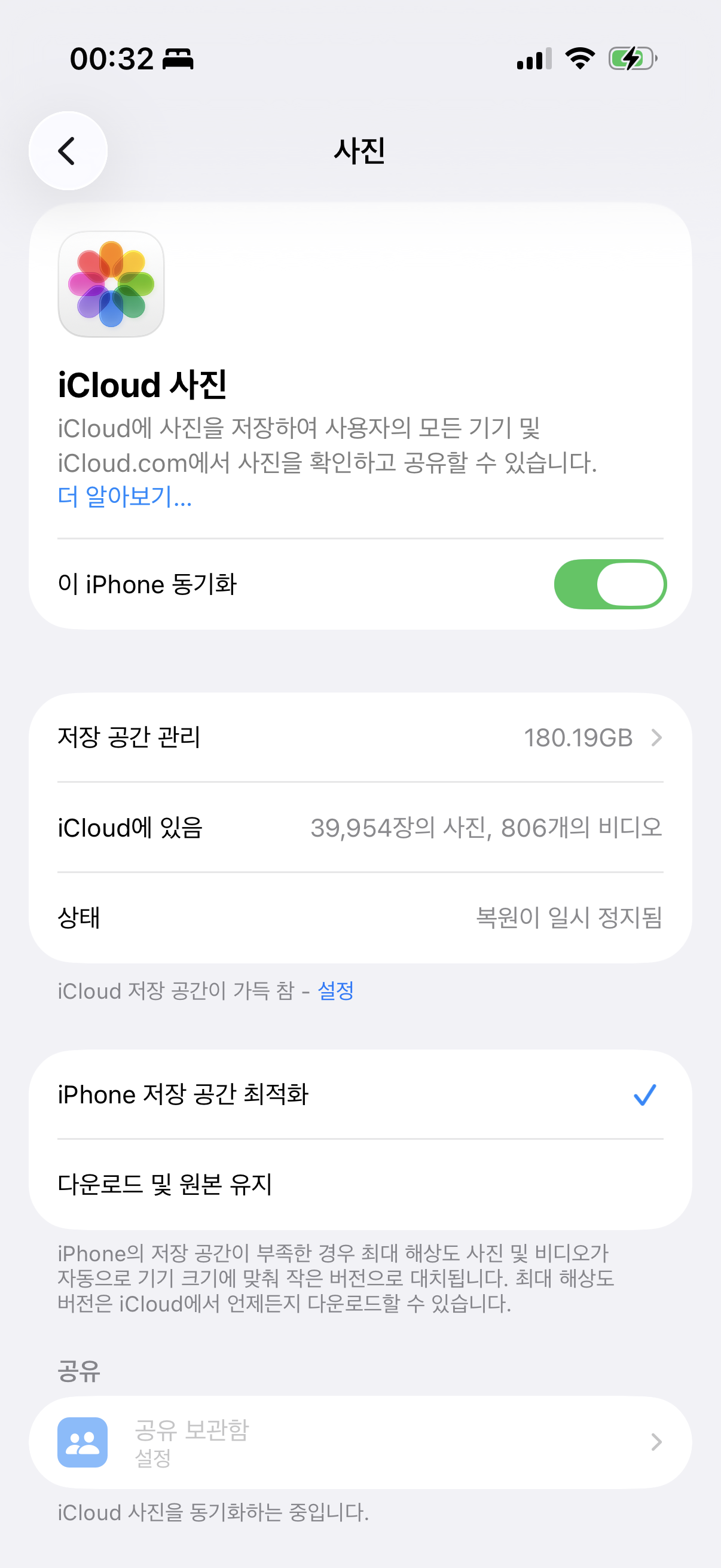 아이클라우드 용량이 부족하다고 해서 아이폰에서 영상을 대량 삭제했는데요.(현재 아이폰에 남은 영상 68개) 최근 삭제된 항목도 비웠으나 아이클라우드에는 여전히 영상 개수가 삭제하기 전 개수(806개)로 집계되어있고 동기화하려고 하니 오히려 아이클라우드에 있는 영상들이 다운받아지려고 하는지 저장공간이 가득차서 복원이 일시정지되었다고 뜹니다. 기기상에서는 아이클라우드 드라이브만 따로 들어갈 수도 없는데 이미 기기에서 삭제한 영상을 아이클라우드안에서 어떻게 삭제해야하나요? 사진 앱에서 삭제하면 아이클라우드에서도 삭제되는거 아니었나요..
