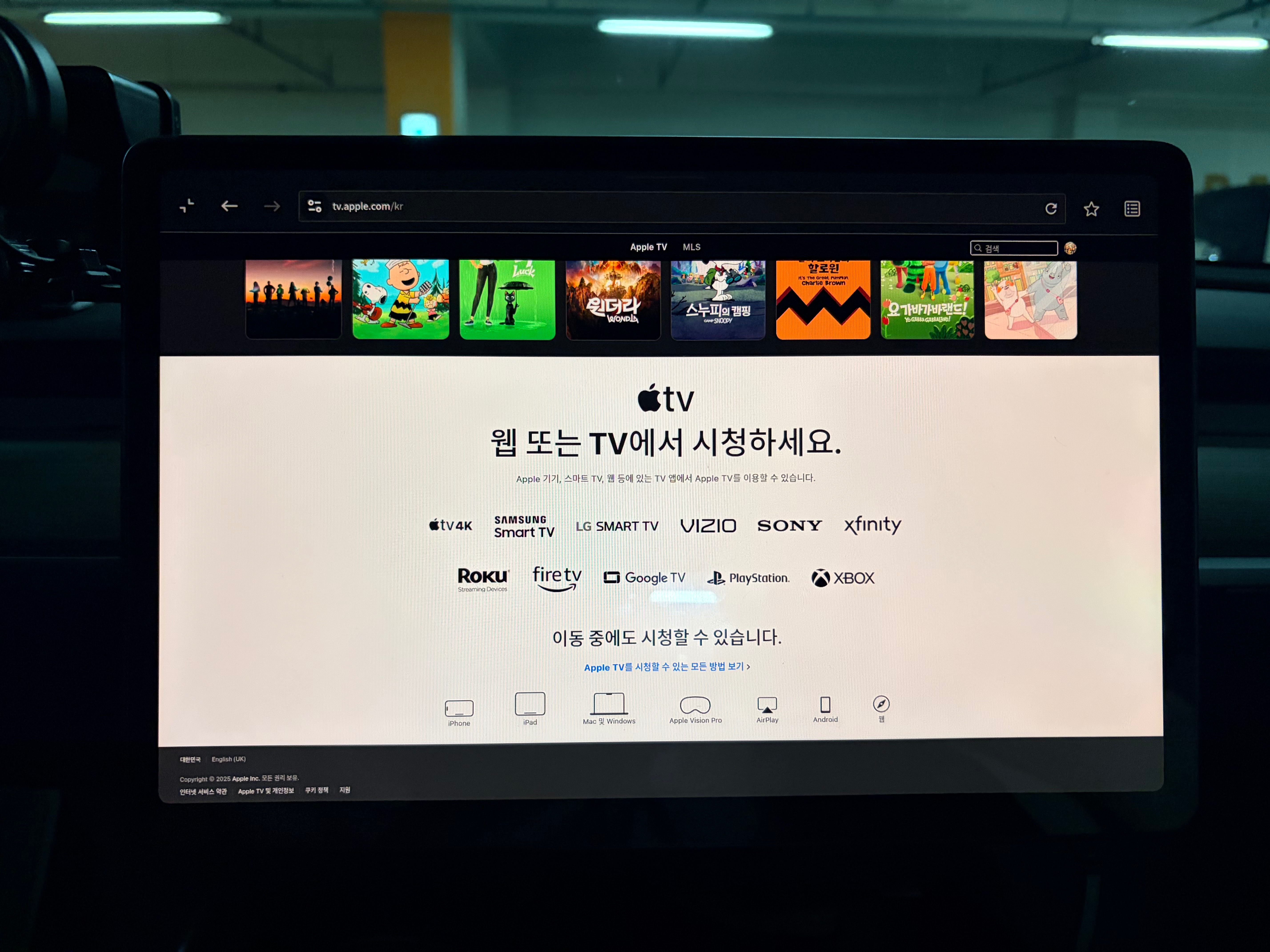 테슬라 차량 브라우저에서 애플티비 한글자막 선택 오류