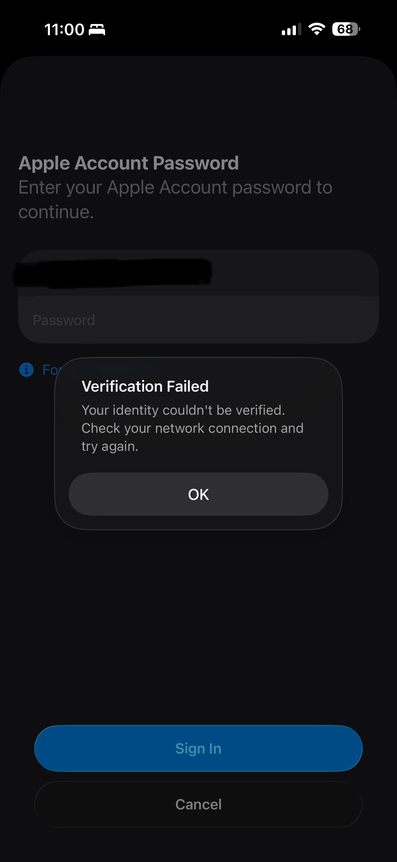iPhone에서 Apple 계정 로그인이 계속 안 됩니다.