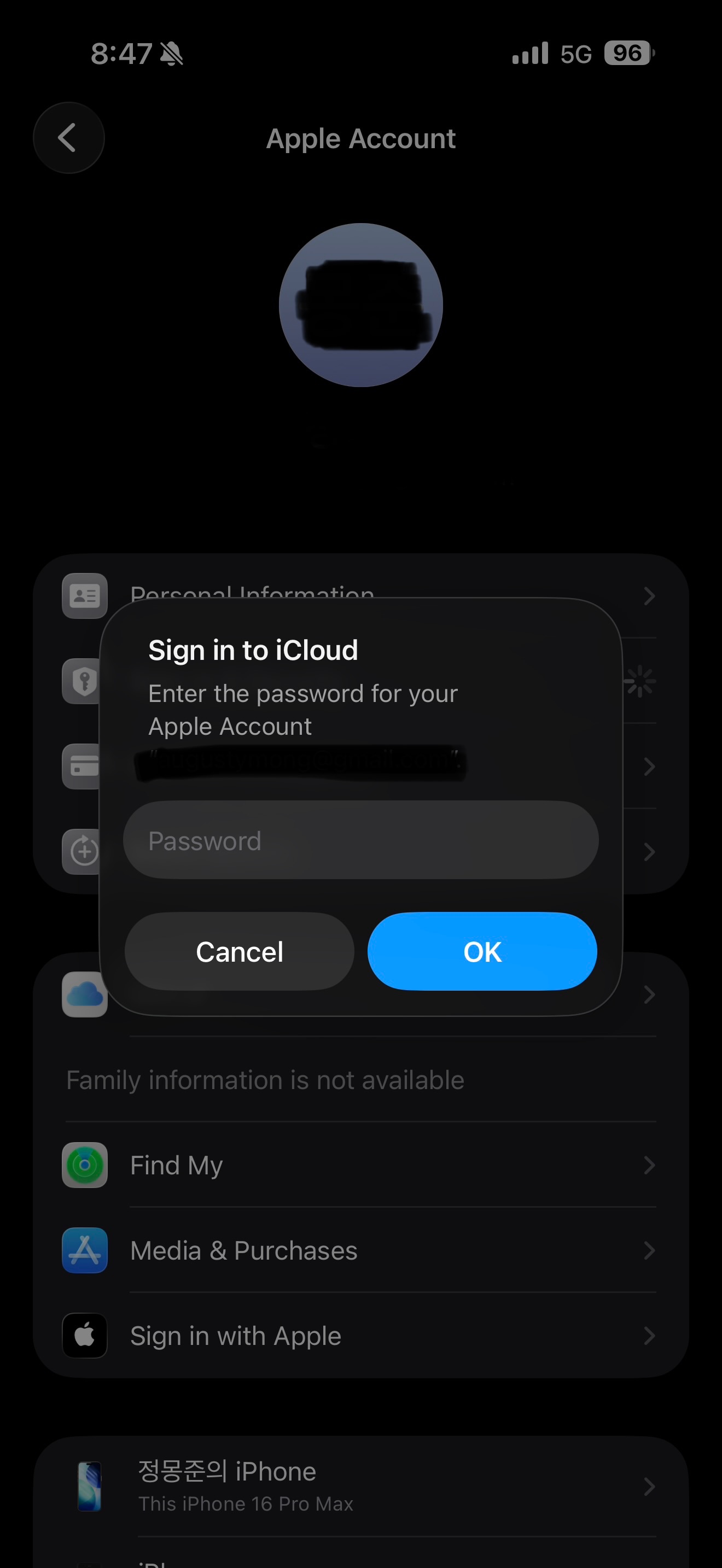 어제 밤부터 갑자기 기기에서 애플 계정 로그인이 풀리고 이런 화면이 뜹니다.