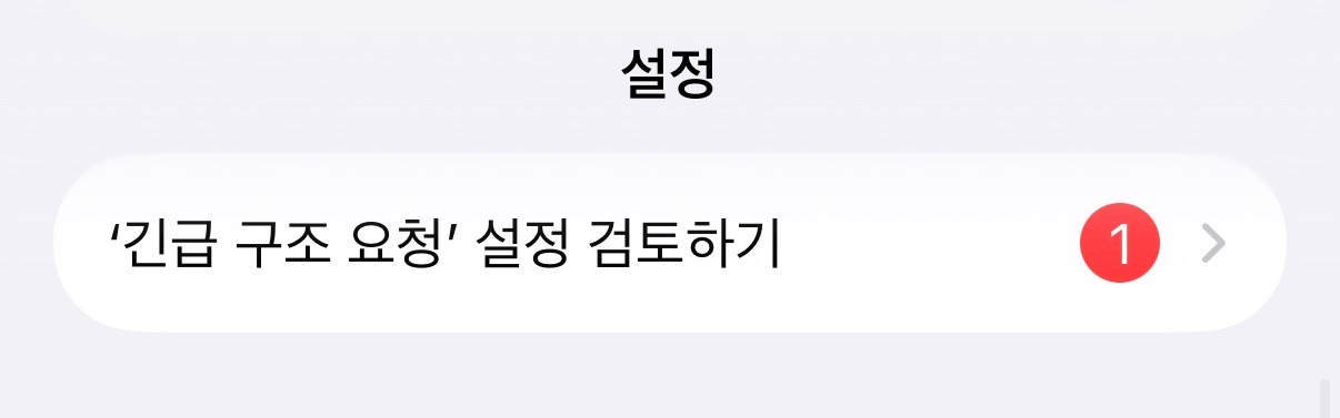 설정>'긴급 구조 요청' 설정 검토하기 배지가 사라지지 않음