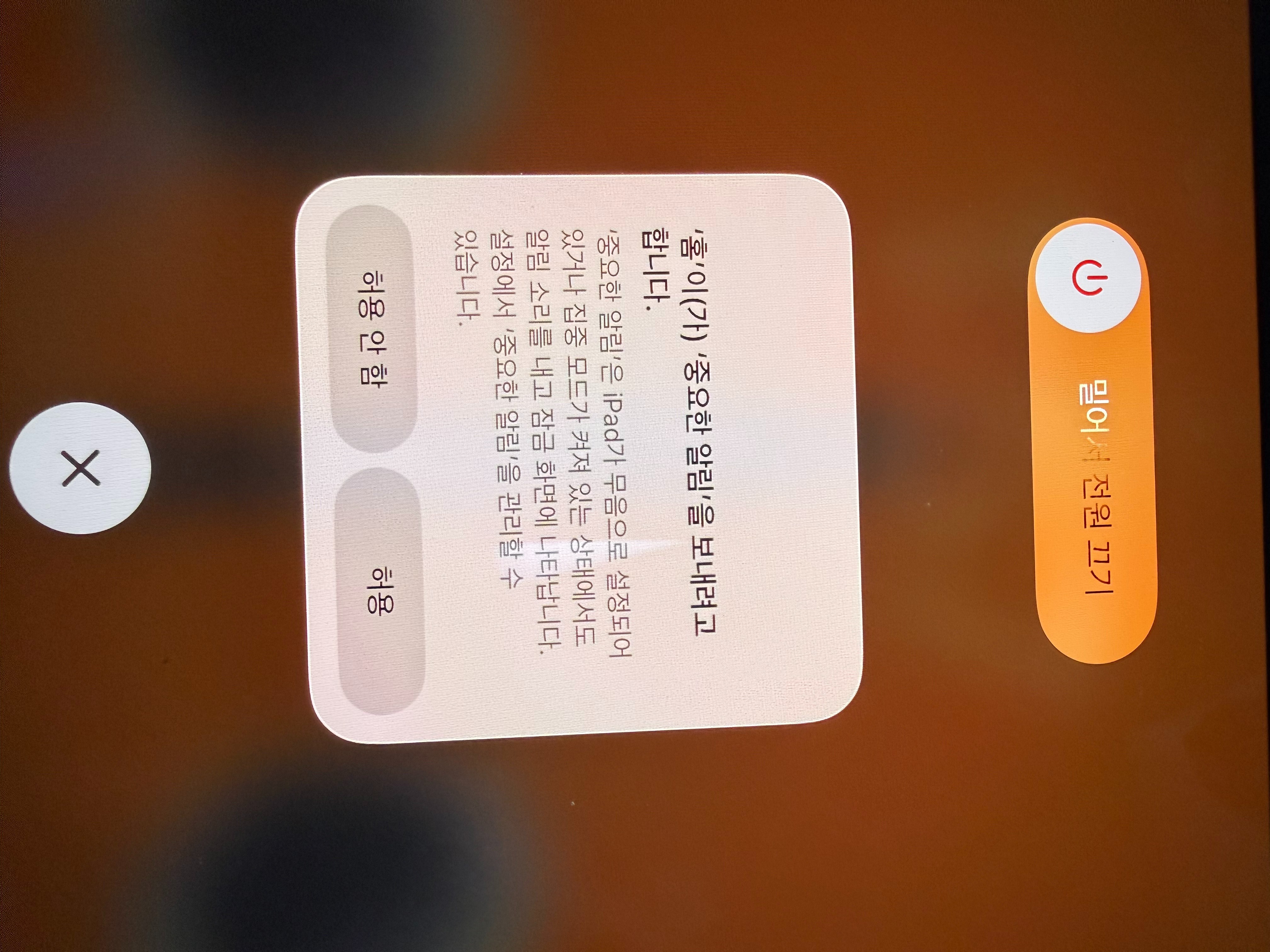 아이패드 중요한 알림 허용하기 떳는데 허용이 안눌려요 강제 재부팅도 안됩니다 ㅠㅠ 20분동안 계속 시도해보는중이에요도와주세요