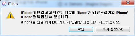맨 처음에 아이튠즈 키고 핸드폰을 연결했더니 이런 메세지가 뜨더군요