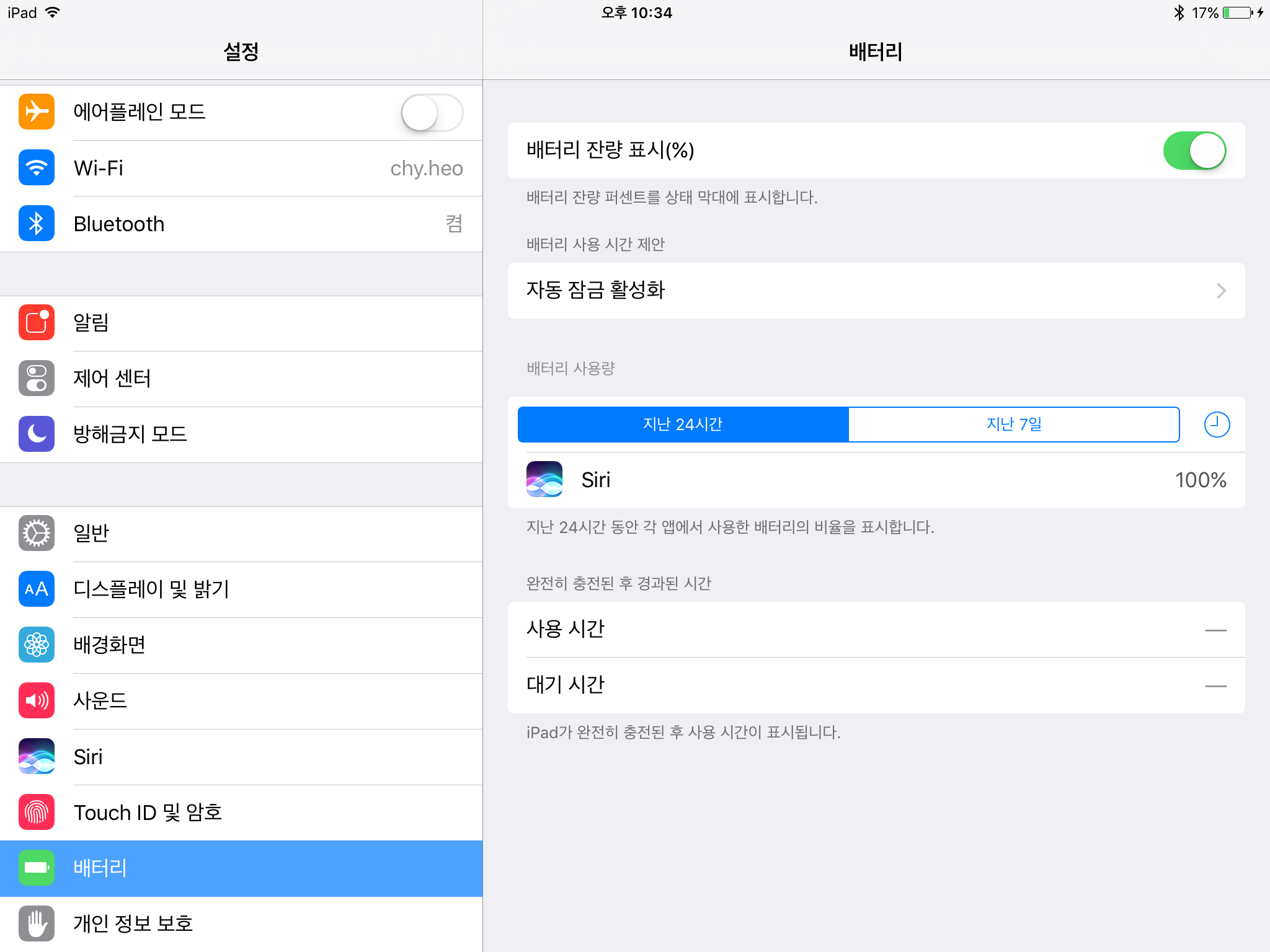 배터리 사용량에 siri가.. 100% 사용됬다고 나오네요..