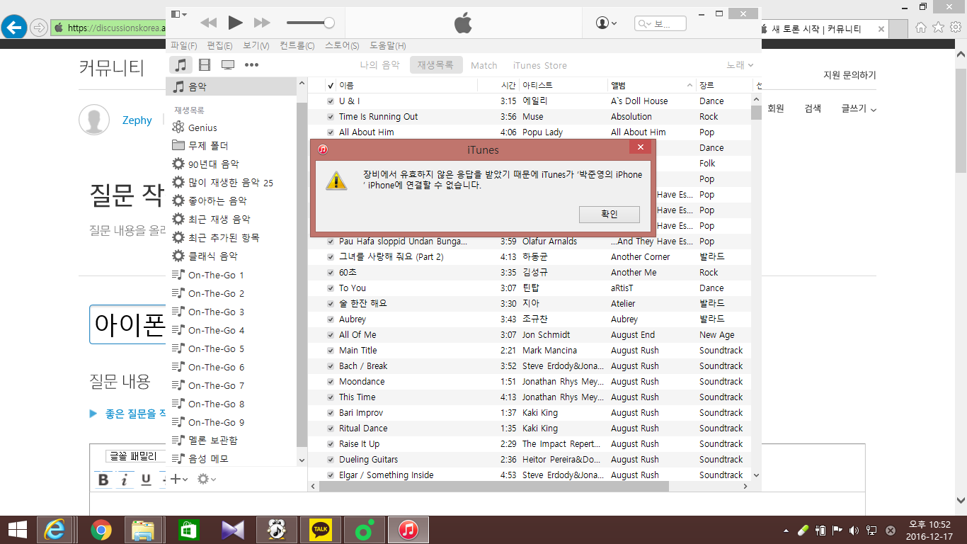 '장비에서 유효하지 않은...'아이폰을 아이튠즈에 동기화시킬려고했지만...