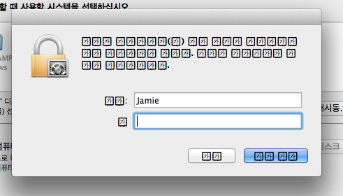 암호를 요구하는 창이 뜰때 한글이 깨져서 나옵니다.